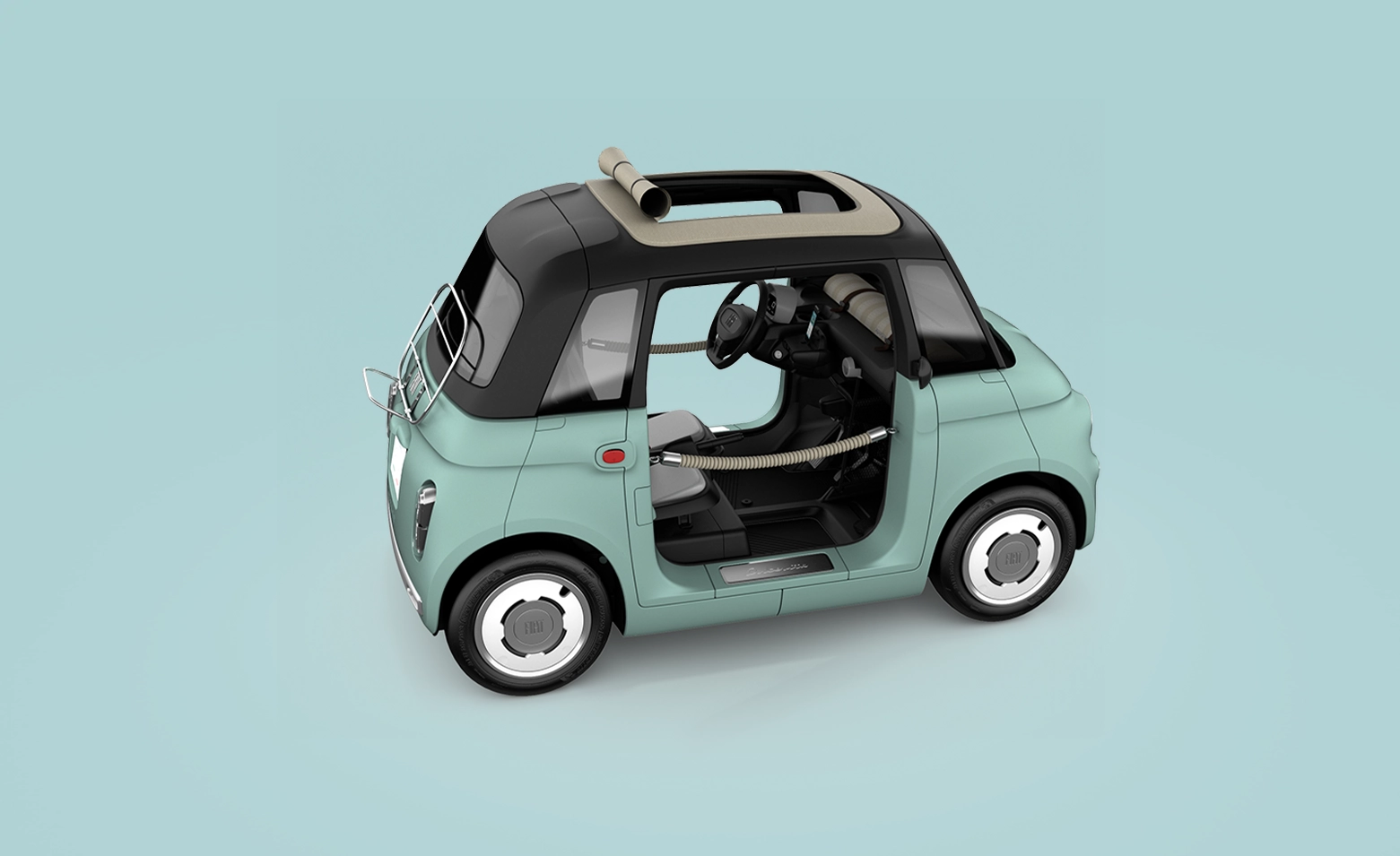 Grâce à sa stabilité et à sa vitesse maximale de 45 km/h, c’est un véhicule sûr et facile à conduire. La nouvelle Fiat Topolino offre plus de sécurité par rapport à un véhicule à deux roues. La position assise élevée (au même niveau que les autres véhicules) et la grande surface vitrée assurent une excellente visibilité de la route et de l'environnement. Elle est également équipée de ceintures de sécurité à 3 points (dépassant ainsi la réglementation qui n'en exige que 2) et d'un cadre en acier tubulaire qui offre un espace rigide et protège les passagers avec une déformation minimale en cas d'impact. Cela lui permet de résister à une collision à sa vitesse maximale. De plus, la batterie est située sous les sièges, dans un espace qui la protège des collisions, évitant ainsi les risques d'incendie.